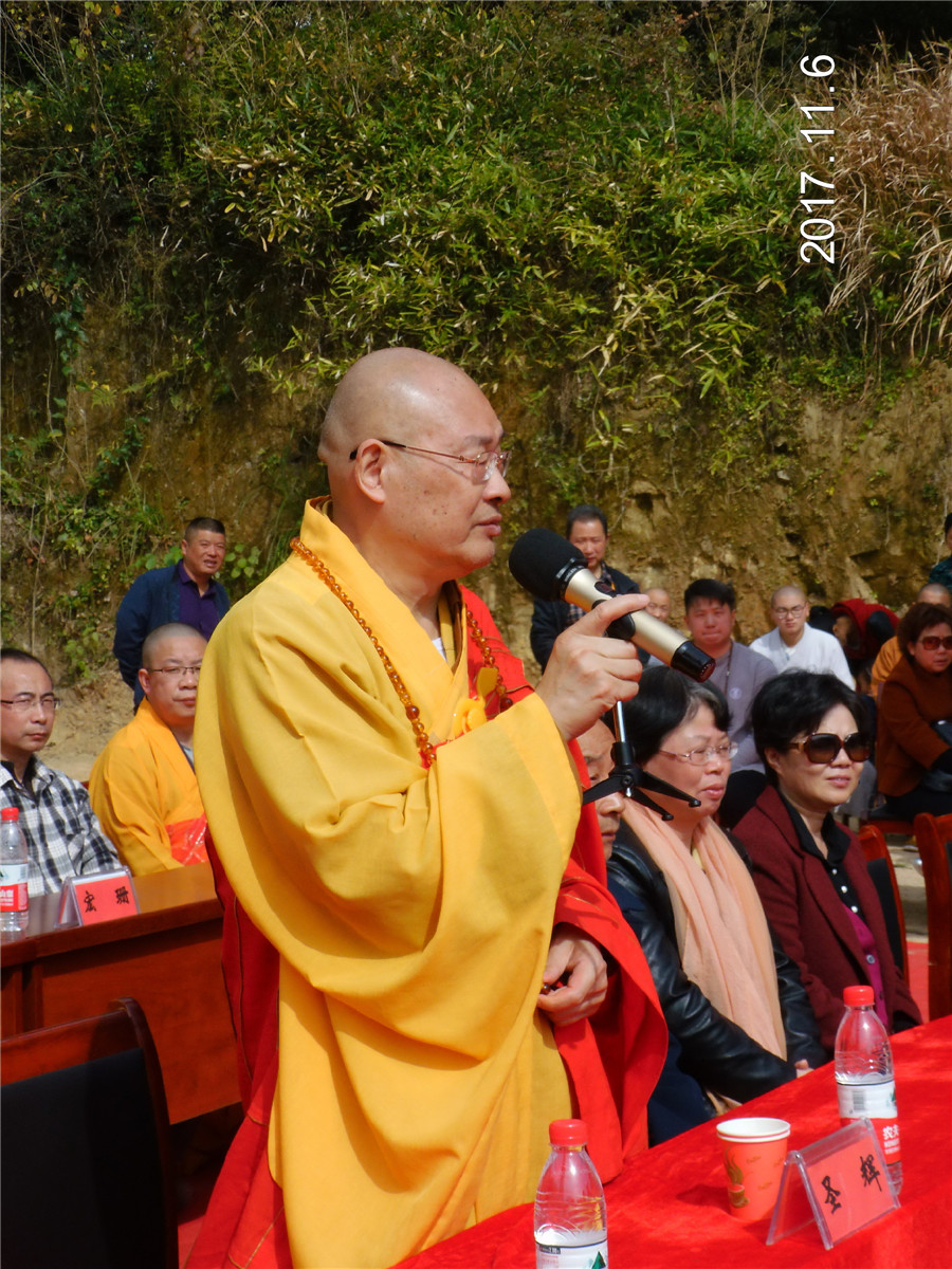 方勇在讲话中希望,以党的十九大精神为指引,二祖禅堂着力弘扬佛教爱国爱教,团结进步,服务社会的优良传统,始终坚持以社会主义核心价值观;要把禅堂建设好、修复好,建成和谐寺院。圣辉在仪式上作了讲话。