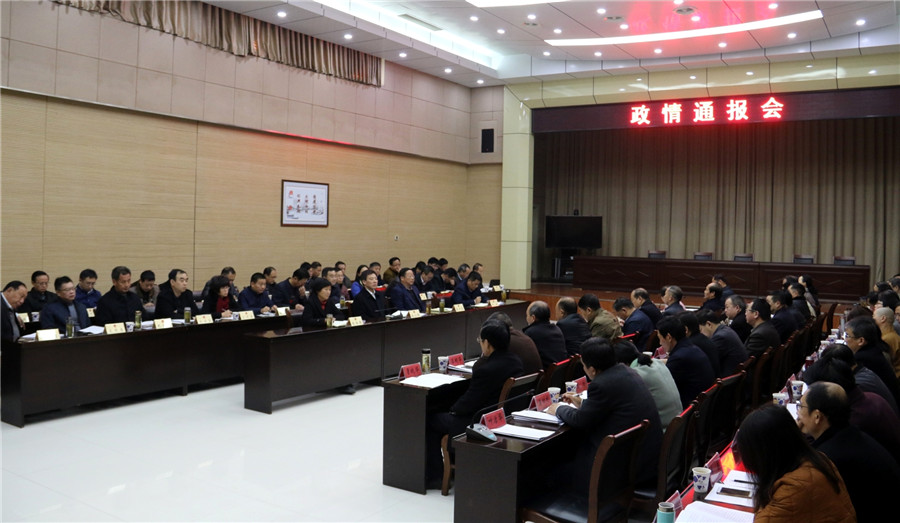 11月27日上午,我县在县政府大会堂召开政情通报会,向人大代表、政协委员通报2017年经济社会发展情况及相关重点工作。县长朱小兵出席会议并讲话。县人大常委会主任张达华,县政协主席赵福南,县委常委、常务副县长陈时彪,县人大常委会副主任王旺来、施爱枝、吴朝良,县政府副县长李传萍、阮波,县政协副主席占卓夫、殷书林、石金印、吕明华出席会议。